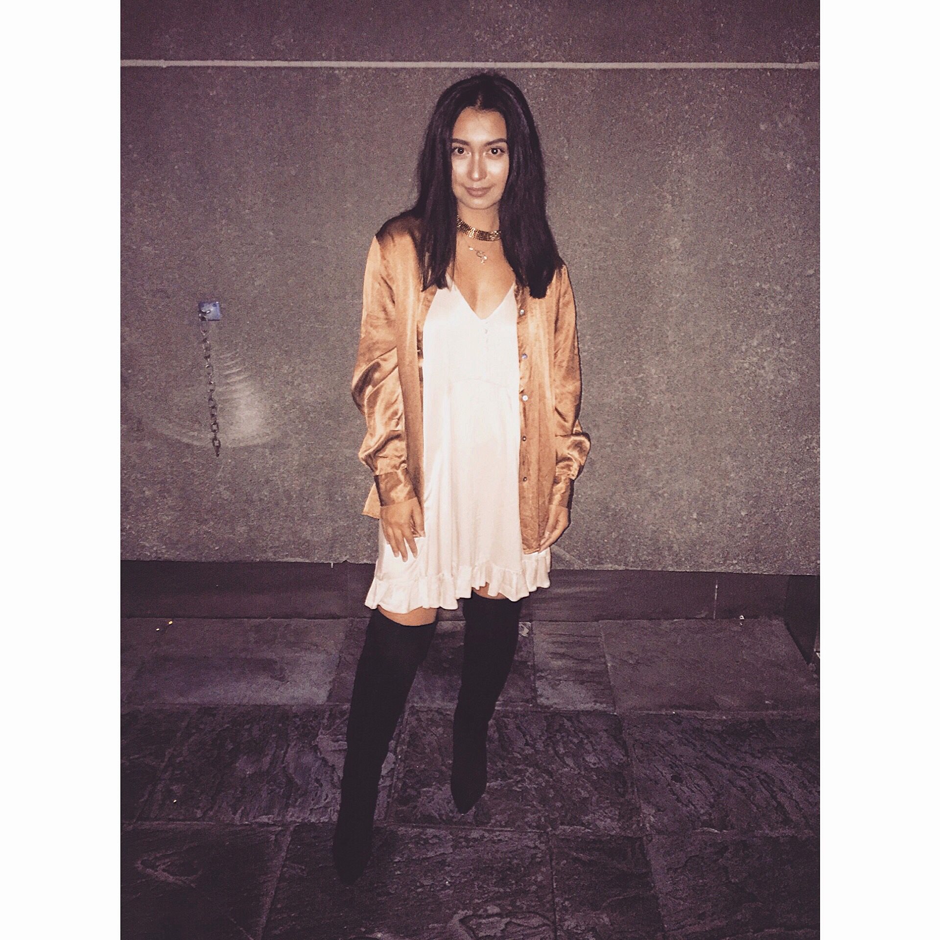 The rust coloured silk blouse that I threw over my Zara silky slip was thrifted and only cost me about C$8.00! I definitely suggest you hit up your local thrift shop when it comes to blouses, you can really get a ton of beautiful bargains! I paired this look with a black diamante encrusted choker that I bought in Turkey (for cheap I must say) and VOILA that was my #ootd.
